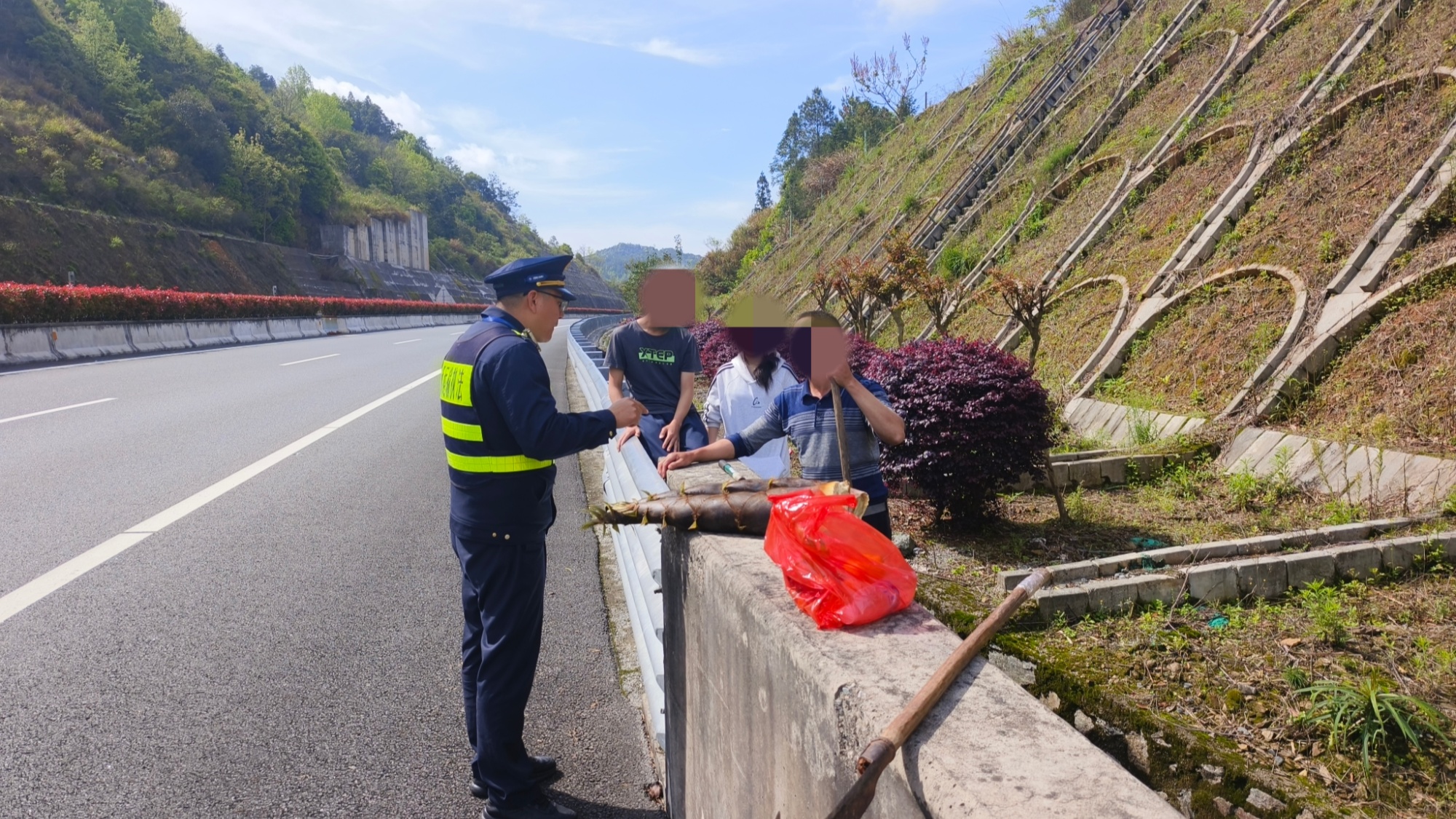 近日,三明高速执法支队二大队执法人员在执行路政巡查任务时,发现三名行人在快车道翻越中央护栏横穿高速公路,险情一触即发。