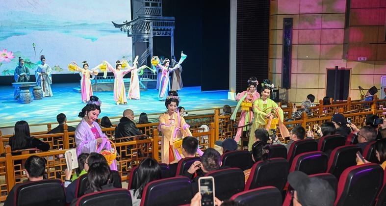 宋式点茶技艺雅致呈现,七彩长绸舞翩若惊鸿,琵琶声起勾勒市井繁华……