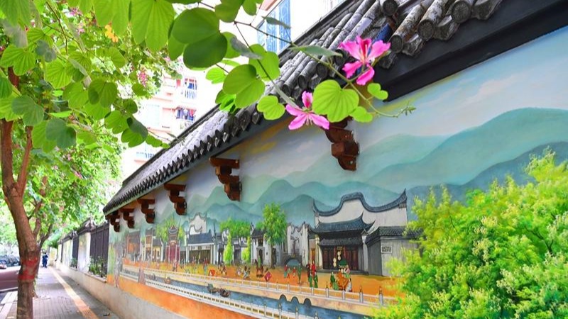 茶亭粉干巷墙体彩绘“上新” 描绘茶亭历史变迁