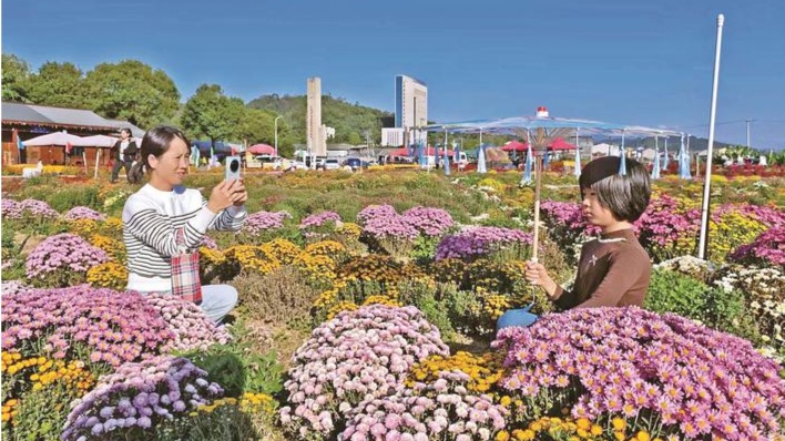 初冬暖阳下,沙县区中国菊花种质资源保存中心南方分中心基地内繁花似锦。