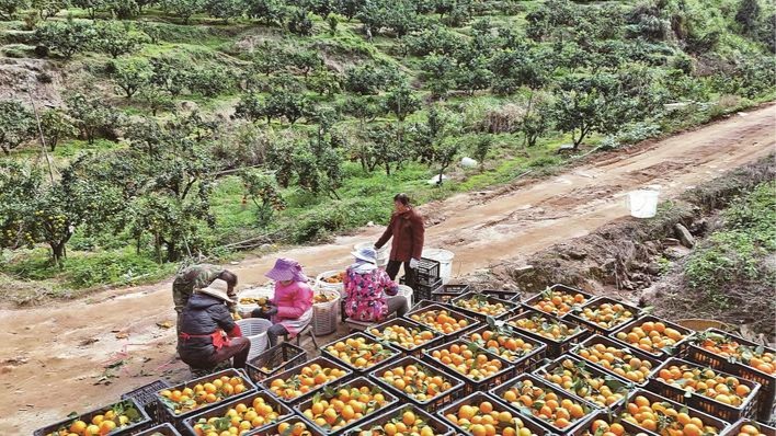 11月20日,沙县区高桥镇上坑村百亩“红美人”柑橘迎来丰收。