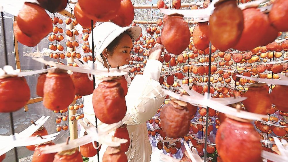 11月23日,在宁德市古田县利洋村柿子园里,红彤彤的柿子密密匝匝挂满枝头,吸引市民游客前来游玩。