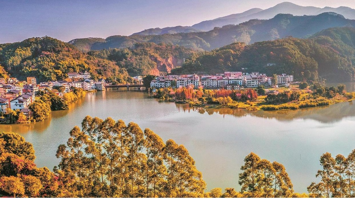 冬日里,永春县东关湿地公园在晨雾中展现出一片静谧景象,成片落羽杉褪去翠绿,换上橙红、金黄的盛装,枝叶舒展间尽显冬日韵味。