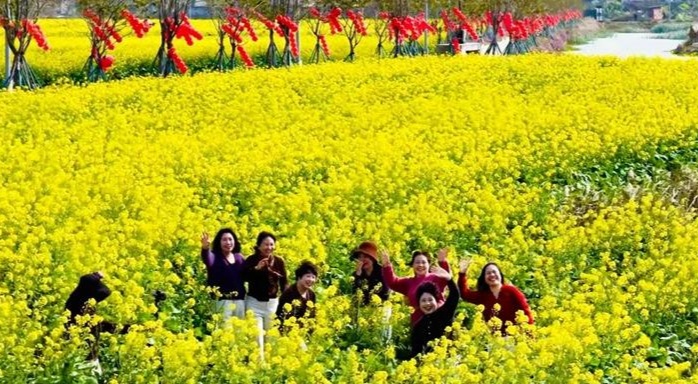 连日来,福清市江镜镇玉桂洋特色农业产业基地的近300亩油菜花竞相绽放,吸引不少市民游客前来踏青赏花、拍照打卡。