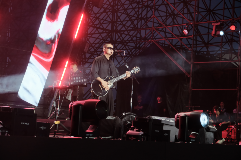此后,椿乐队、九宝乐队、梦然等歌手依次登台。椿乐队以《野草》等作品撕裂夜空,歌词中蛰伏的生命力在嘶吼中破土而出;九宝乐队则让马头琴的苍茫与失真音墙共舞,《特斯河之赞》里呼麦的喉音与双踩鼓点碰撞出草原重金属的异色火花;梦然带来《少年》《是你》等脍炙人口的歌曲激起青春的浪潮,引发全场大合唱。