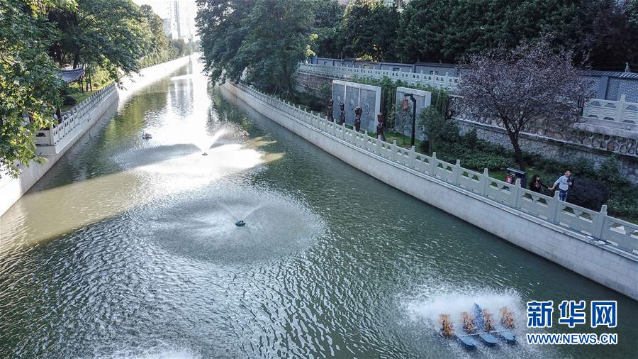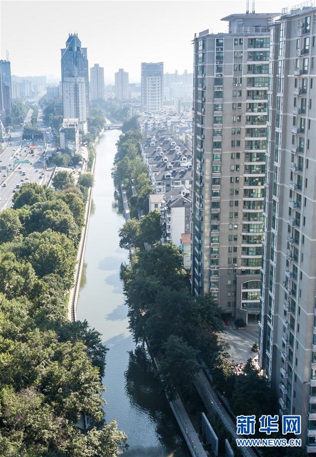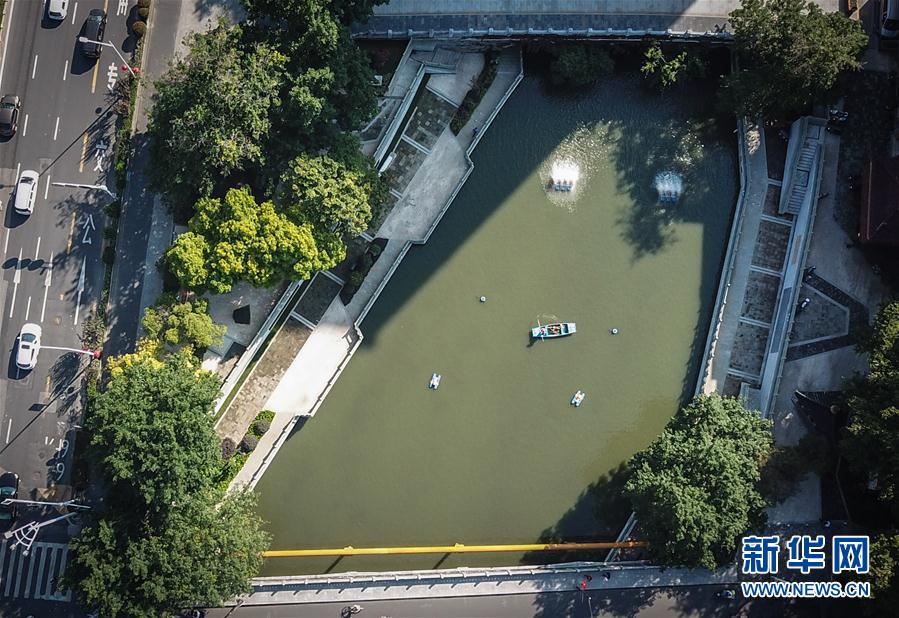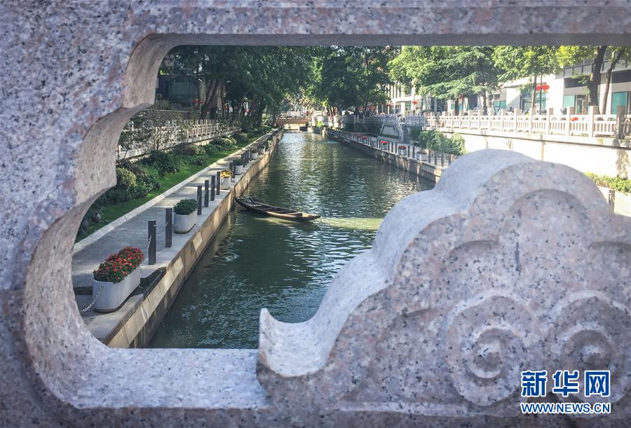 秦淮内河北段竺桥的臭水河已经整治一新(10月9日摄)。 2017年起,江苏省南京市通过增加绿道透水面积、增设调蓄池等措施,加大黑臭河道整治力度,计划全年重点整治黑臭河道109条。目前,一批经过整治的内河河道已经展露新姿,城市环境大为改观。新华社记者 杨磊 摄 -