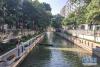 秦淮内河北段竺桥的臭水河已经整治一新(10月9日摄)。 2017年起,江苏省南京市通过增加绿道透水面积、增设调蓄池等措施,加大黑臭河道整治力度,计划全年重点整治黑臭河道109条。目前,一批经过整治的内河河道已经展露新姿,城市环境大为改观。新华社记者 杨磊 摄