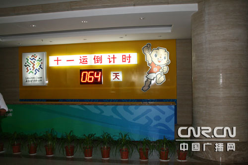 十一运会倒计时标识在济南市到处可见