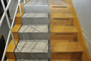 广播剧录音棚内效果室内为仿声效果特制的楼梯。