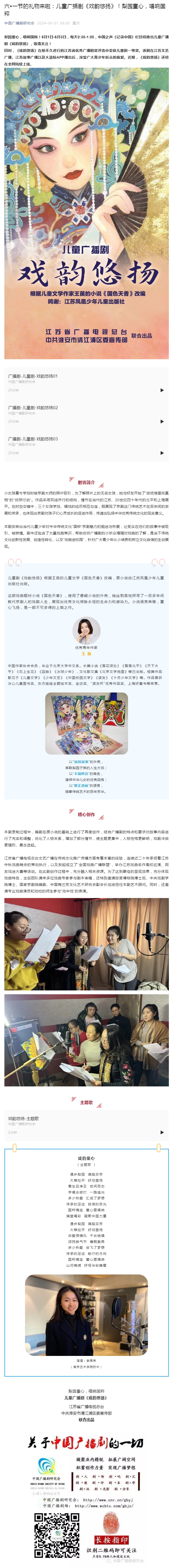六一节的礼物来啦:儿童广播剧《戏韵悠扬》!梨园童心,唱响国粹