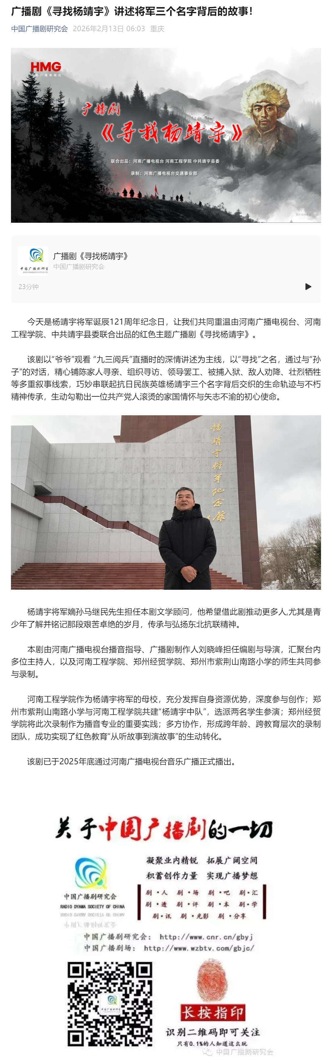 广播剧《寻找杨靖宇》讲述将军三个名字背后的故事!