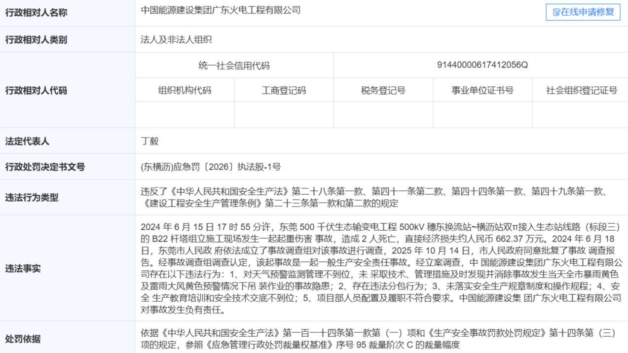 一小车被砸致2人死亡 东莞市应急管理局对三家公司进行处罚