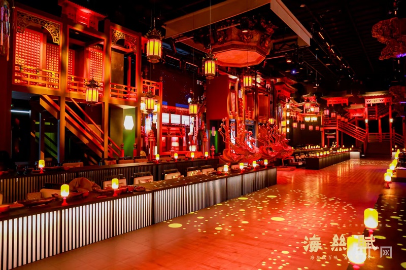 步入总面积达3000平方米的“海丝赋”空间,便宛若穿越时空踏入千年海丝港埠。宝船造型的门头气势恢宏,星槎胜览门厅一步一景,中式殿阁的庄重、南洋市集的喧闹、天方之境的梦幻与西洋宫廷的华美,通过精妙的场景设计和数字光影技术交织呈现,移步换景间,一幅幅海上丝路的繁华画卷在眼前徐徐铺展。
