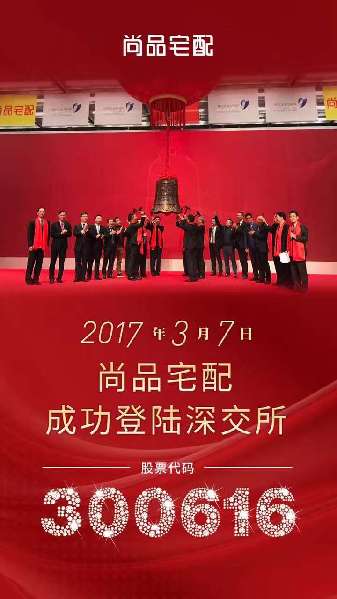 据南方网报道,今日(3月7日)上午,尚品宅配(300616)上市敲钟仪式在深交所举行,作为定制家居行业的代表品牌,尚品宅配登陆资本市场,吸引了行业的高度关注注。截止中午1点,尚品宅配股价已达78.26元,涨幅达43.99%。