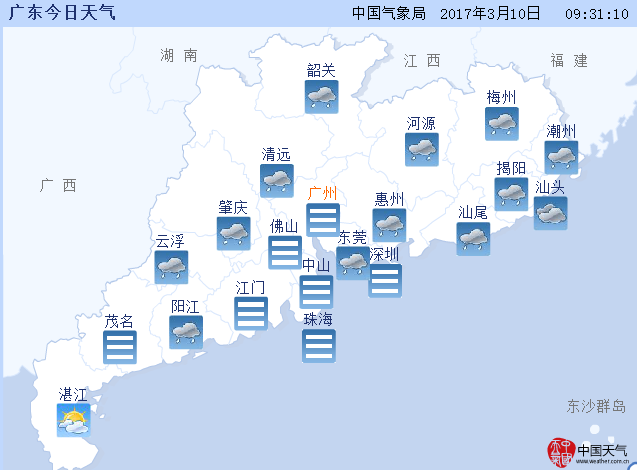 广东省气象台预计,10日起受偏南暖湿气流和高空槽影响,粤北市县有中雨,全省温湿逐步上升,早晚有轻雾或雾,能见度偏低。