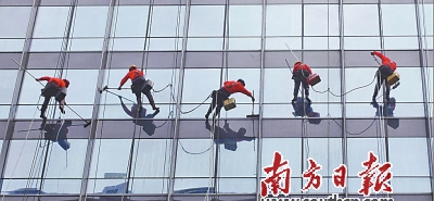 外立面为玻璃幕墙的,至少每年清洗一次。 南方日报记者 鲁力 摄