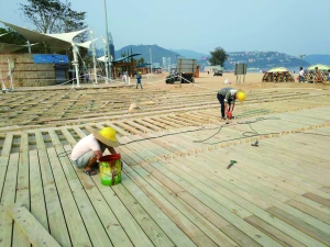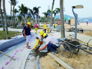 昨日,记者来到盐田区大梅沙海滨公园,公园处处都是施工景象,工人们在铺设路面、安装新的出入闸口,新的厕所、冲沙池等便民设施也在加紧施工当中。