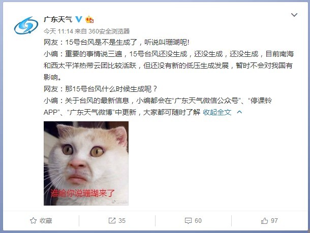 “广东天气”官方微博截图。
