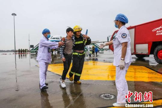 中新网广州11月8日电 (记者 郭军) 警灯闪烁、笛声长鸣,消防车、急救车、警车等各种保障车辆全部出动……11月8日,广州白云机场联合南方航空及相关驻场单位在二号航站楼站坪268机位举行了一次航空器突发事件应急救援联合演练。这是该机场近年来规模最大、层次最高、参演单位最多、影响最广的实景推进联合演练,涵盖航空器空中故障应急救援及后续处置的所有科目。