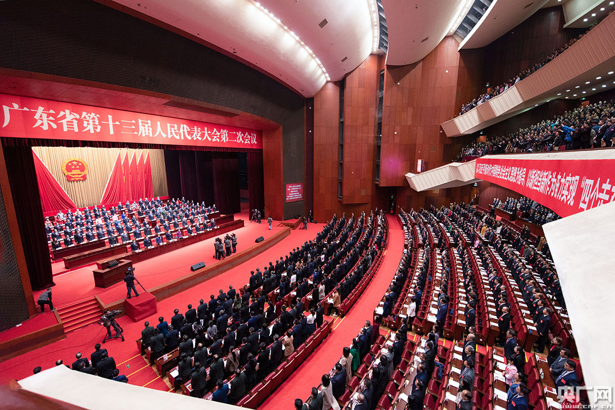 广东省十三届人大二次会议28日在广州白云国际会议中心开幕。(央广网记者 官文清 摄)