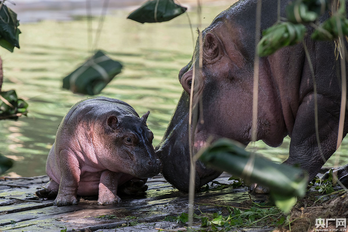 河马妈妈舐犊情深。(央广网记者 官文清 摄)