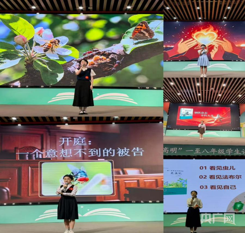 大赛分初中组与小学组进行,参赛作品涵盖文学经典、爱国主义读物及科普名作等多元类型。初中组选手从“家国情怀”“生命哲思”“品格修身”等多个维度切入,以细腻的文本分析、真挚的情感表达,展现对经典名著的深度思考;小学组选手则带着童真与自信,将书中故事娓娓道来,传递阅读带来的快乐与力量,生动诠释了“好书相伴、快乐成长”的教育追求。