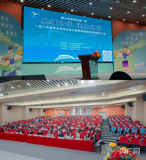 央广网佛山4月25日消息(记者郑少纯)2026年4月23日是第31个“世界读书日”,正值首个“全民阅读周”,广东省佛山市高明区第一届“典耀中华 阅在高明”一至八年级学生读书分享大赛暨寒假阅读成果展示大会在高明区第一中学实验学校圆满落幕。本次大赛由高明区教育局主办,来自全区数十名中小学生登台分享经典阅读的心得与体悟,展现了高明学子在书香滋养中“明德、明理、明志”的成长风貌。