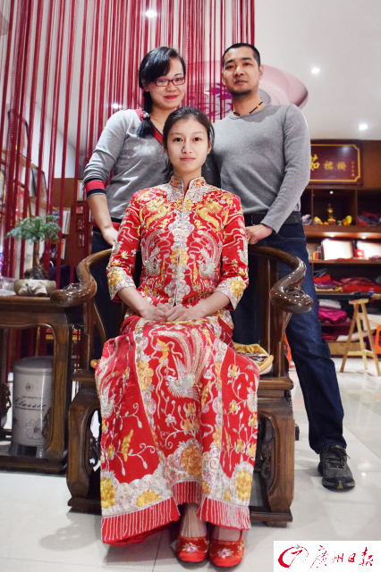 2002年,两个裙褂制作的第三代传人步入婚姻,唐志茹和邓启荣在花都开设了属于自己的工作室,2003年开始借助网络推广这项传统的制作技艺,渐渐开拓出一片市场。“第一年订单只有3、5件,如今一年下来整个工作室能接到300套订单,还处于供不应求状体。”如今,工作室的客户遍布全球,美国、加拿大、英国、马来西亚、新加坡等都有,国内订单远至黑龙江,内蒙古和西藏等省份。