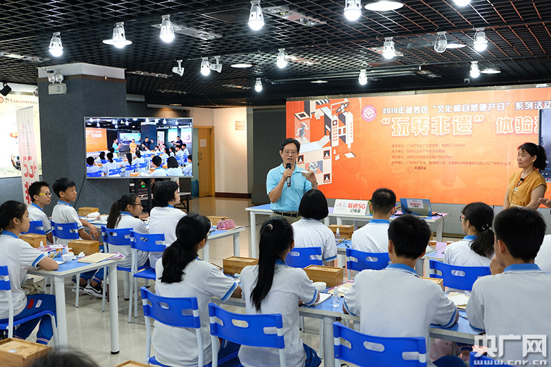 央广网广州6月6日消息(记者陈健光)2019年“文化和自然遗产”期间,广州市越秀区举办一系列宣传活动,以此弘扬中国传统文化,推动非物质文化遗产保护,擦亮广府民俗文化特色活动品牌。其中最引人注目的是5G非遗空中课堂。