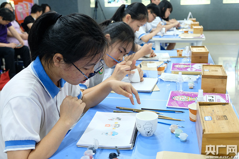 同学们通过课堂对广彩知识进行学习和实践。(央广网记者 陈健光 摄)