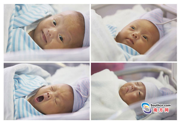 10月21日中午12点25分,晓晓在医院顺产生下一对双胞胎,比预产期提前17周。这对双胞胎胎龄仅23周,大宝460克,小宝480克,均为目前国内出生体重最低的超早产儿。由于双胞胎发育超未成熟,父母还未来得及看他们第一眼,医护人员就立即给予气管插管复苏后,把他们立即转入NICU(小儿重症监护室)继续治疗.