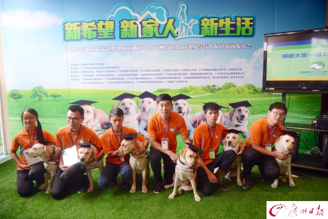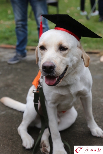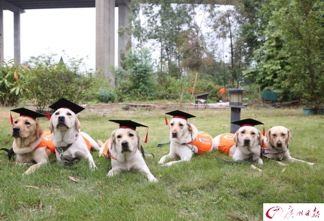 8日,首批6条广州本土训练的预备导盲犬被授予“博士帽”,它们的名字是多拉、艾伦、安安、安妮、安神、爱丽丝,填补了多年来中南七省无本土训练的导盲犬、更无导盲犬训练基地的空白。