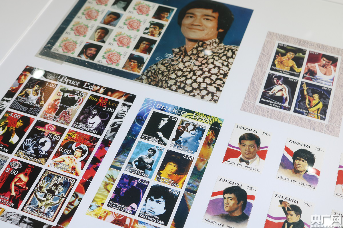 “永庆记忆——老城市,新活力特展”展出的李小龙纪念邮票。(央广网发 实习生夏燕 摄)