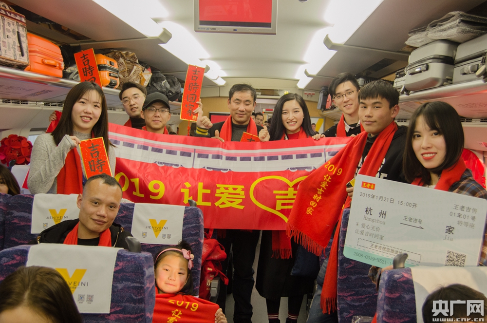 据介绍,“让爱吉时回家”公益活动联合多家爱心单位,提供了北京-商丘、杭州-武汉、杭州-贵阳等爱心高铁、动车线路的公益车票,并为中国人民大学、复旦大学、浙江大学、暨南大学等多所高校的大学生送出“回家吉金”报销车费。今年春运期间,“让爱吉时回家”公益活动将送北京、杭州、上海等地1000名务工人员和大学生回家。