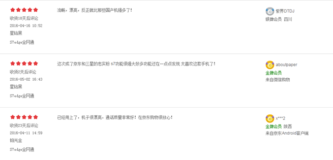 作为手机界的时尚ICON、时尚界的社交宠儿、社交界的网络红人,三星手机每一次的产品更迭从未让消费者失望。今年重磅推出的Galaxy S7 edge,更是以“不一样”的全新姿态成为全民关注焦点。自上市以来,其凭借超强的光影捕捉能力、创新领先的AOD技术以及人性化的防水防尘功能等掀起一番抢购热潮,在京东商城等各大网络平台上独领风骚。仅京东平台,关于S7 edge的产品评论人数就早已突破两万,好评率高达98%,真可谓叫好又叫座。