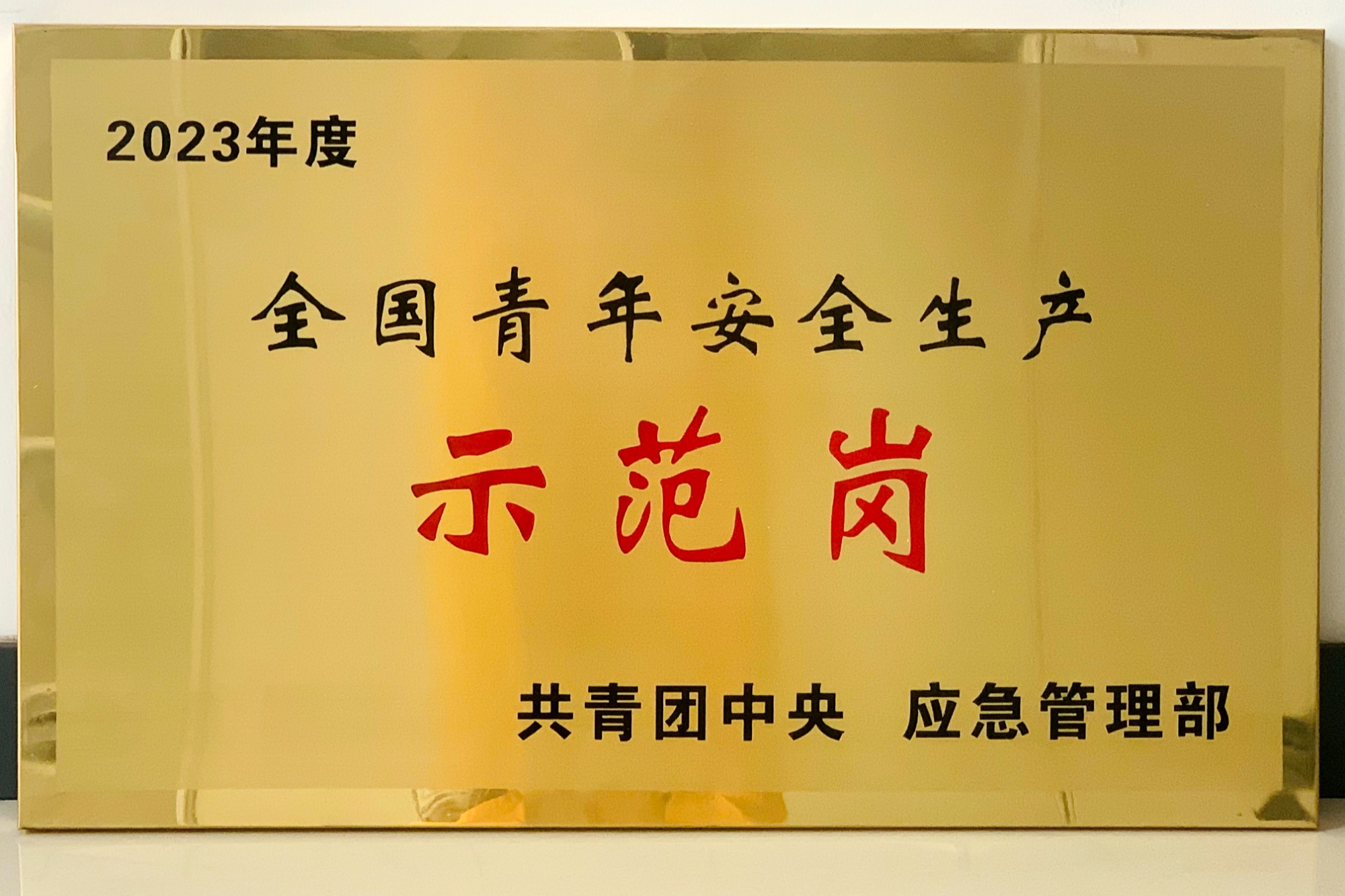 “全国青年安全生产示范岗”荣誉称号(贾珊珊 摄)