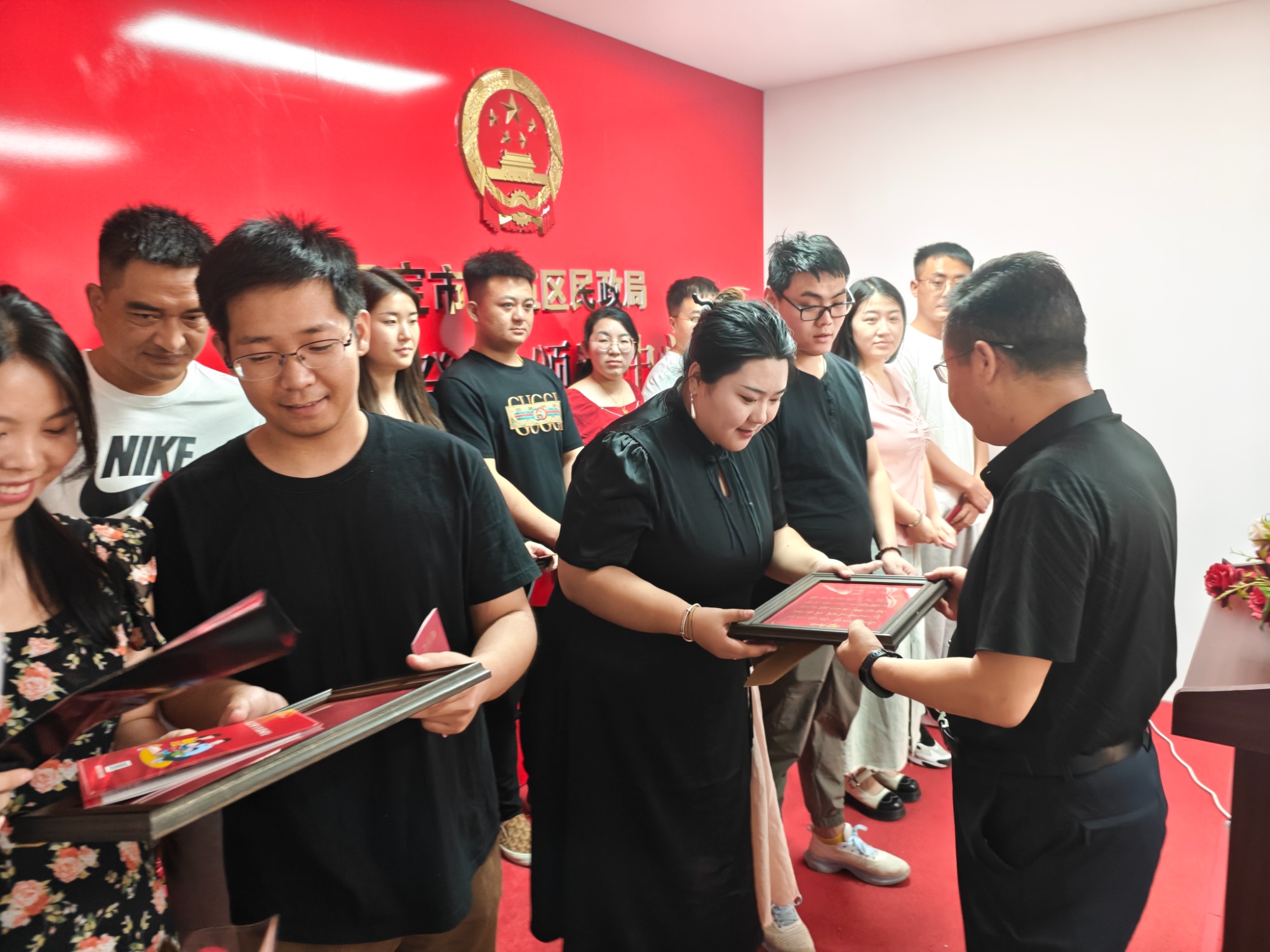 新人领取法治主题婚书(清苑区委宣传部供图)