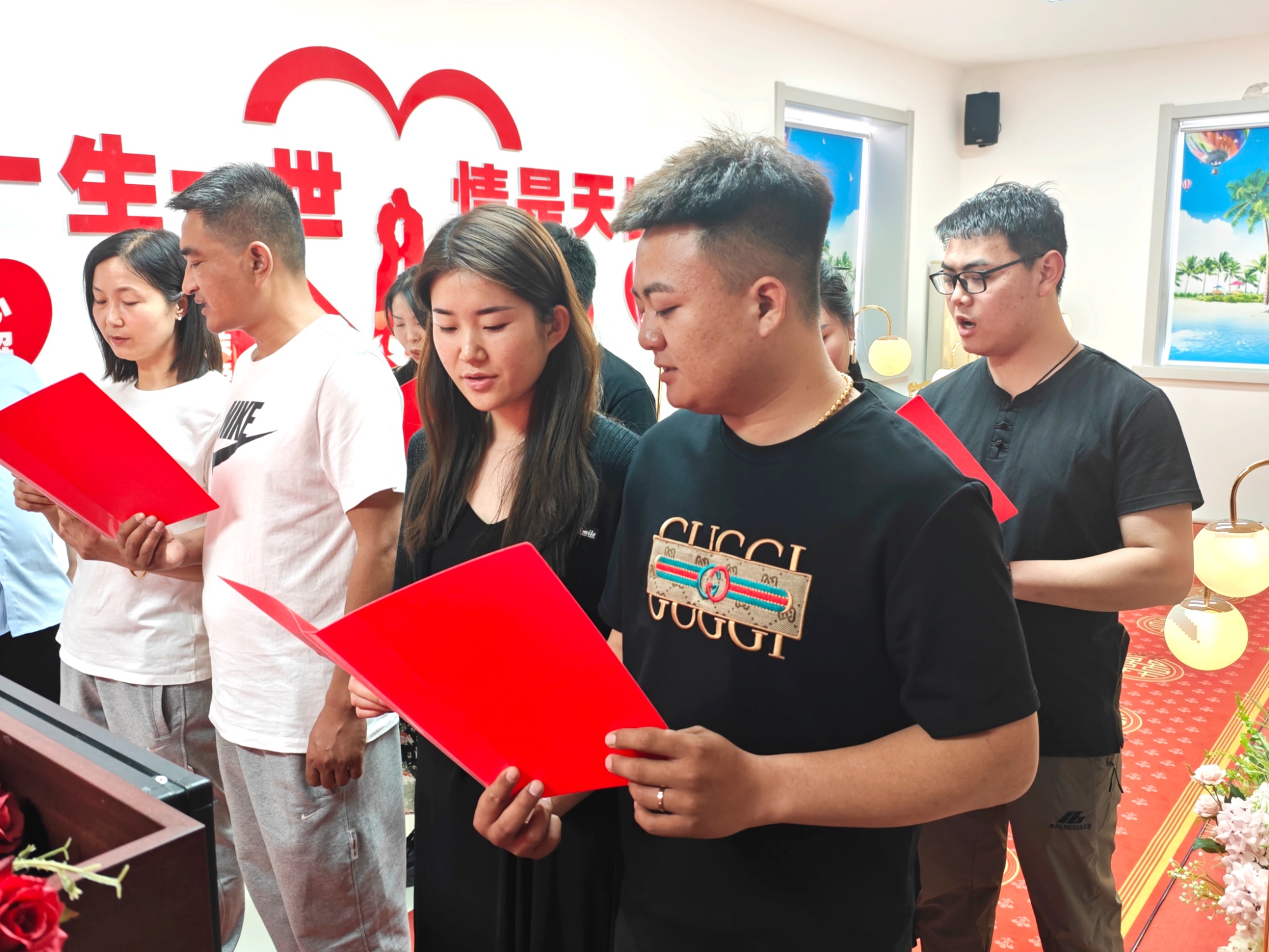 新人们学习《中华人民共和国民法典》并进行结婚宣誓(清苑区委宣传部供图)