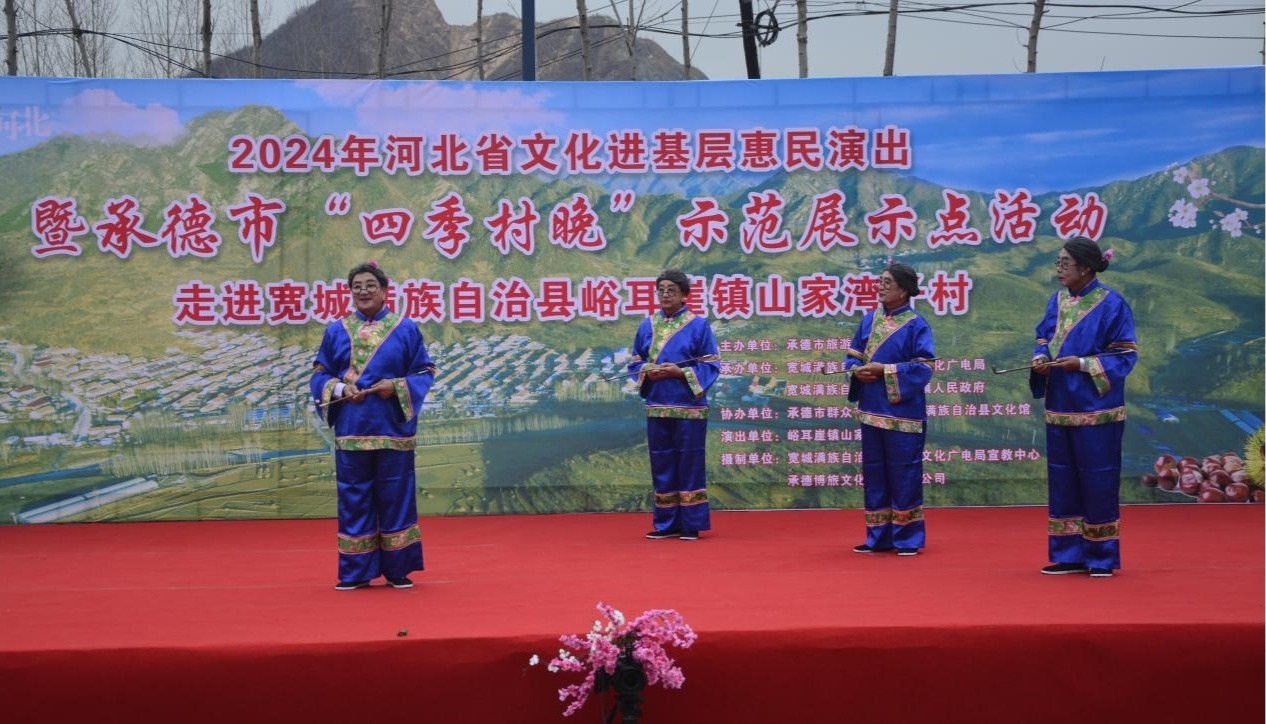近日,走进河北省宽城满族自治县峪耳崖镇山家湾子村,文化进基层惠民演出暨承德市“四季村晚”示范展示点活动正在这里精彩上演,让老百姓在家门口尽享精彩纷呈的文化视听盛宴。