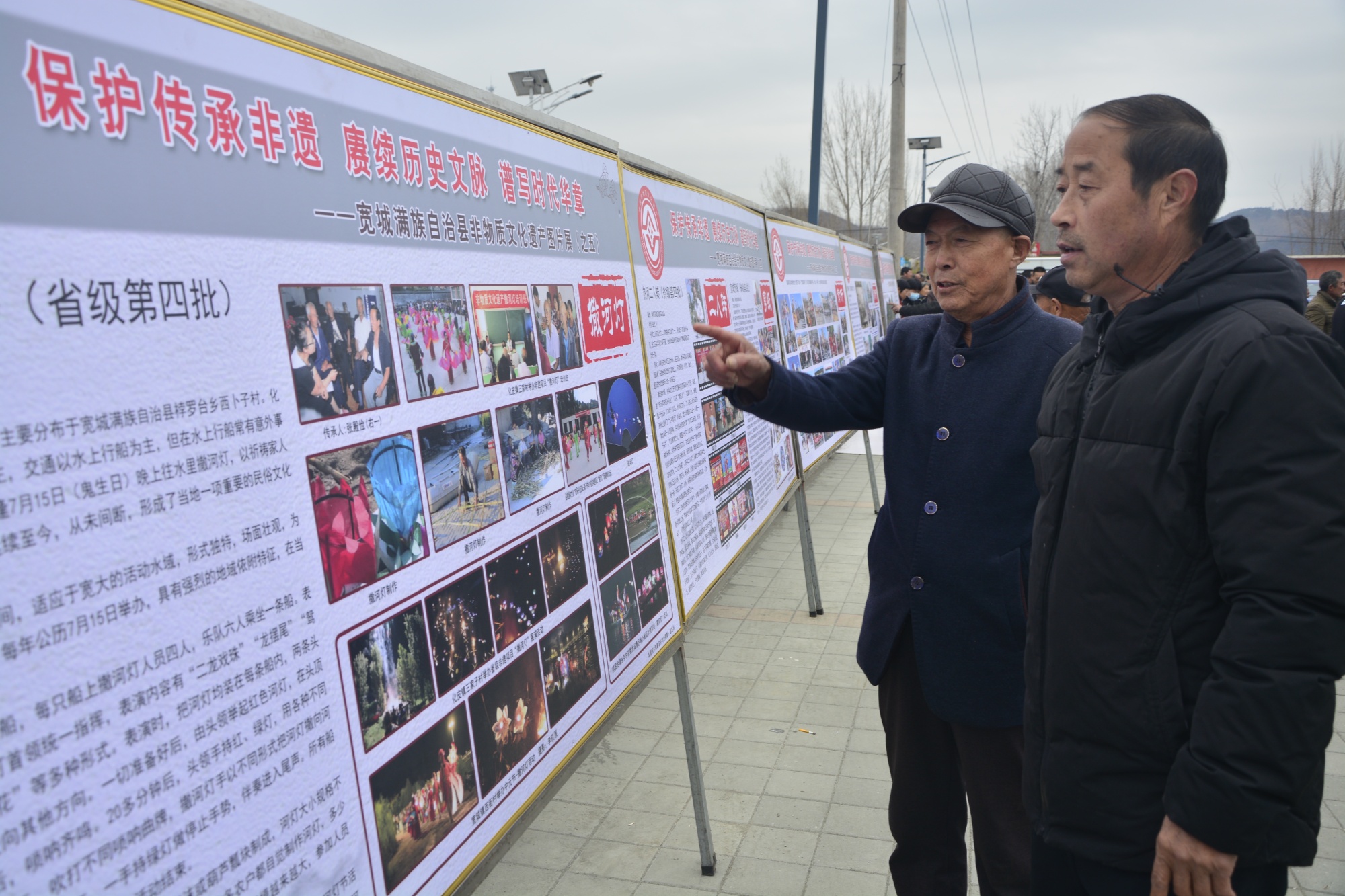 除了精彩的文艺演出外,现场还有宽城非物质文化遗产图片展,展览包括了宽城的40项非遗,吸引了众多村民驻足参观。“在家门口不仅能看到这么精彩的节目,还对我县的非物质文化遗产有了进一步了解,希望以后能多举办这样的活动。”山家湾子村村民刘新华说。
