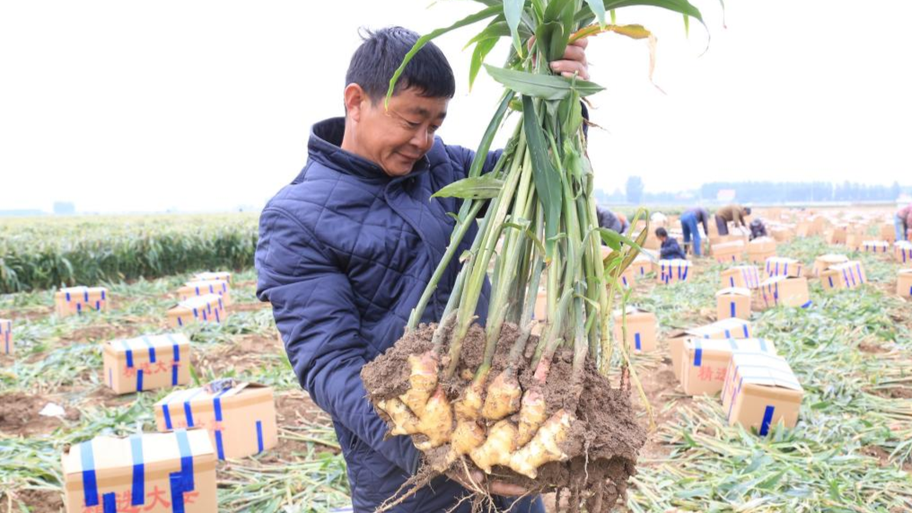 河北蠡县:生姜喜获丰收 合作社模式鼓起农民钱袋子