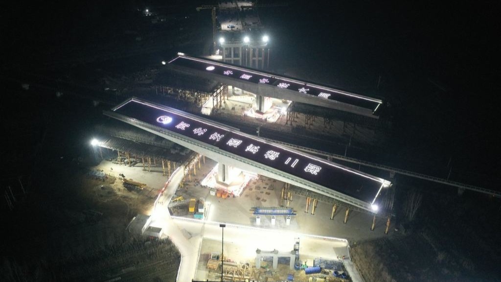 京雄高速二期项目主体工程建成,两座1.6万吨转体桥完成“牵手”对接。