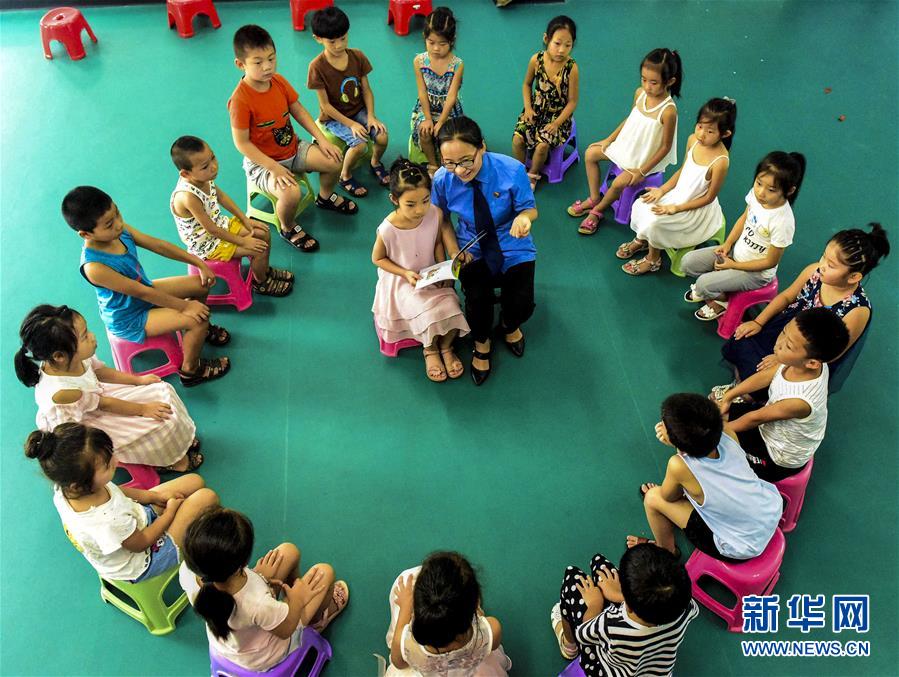 8月13日,河北省阜城县人民检察院检察官为小朋友们讲解安全防范知识。