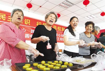 9月17日,石家庄市誉天下社区的居民一起做月饼迎中秋。记者赵海江 摄