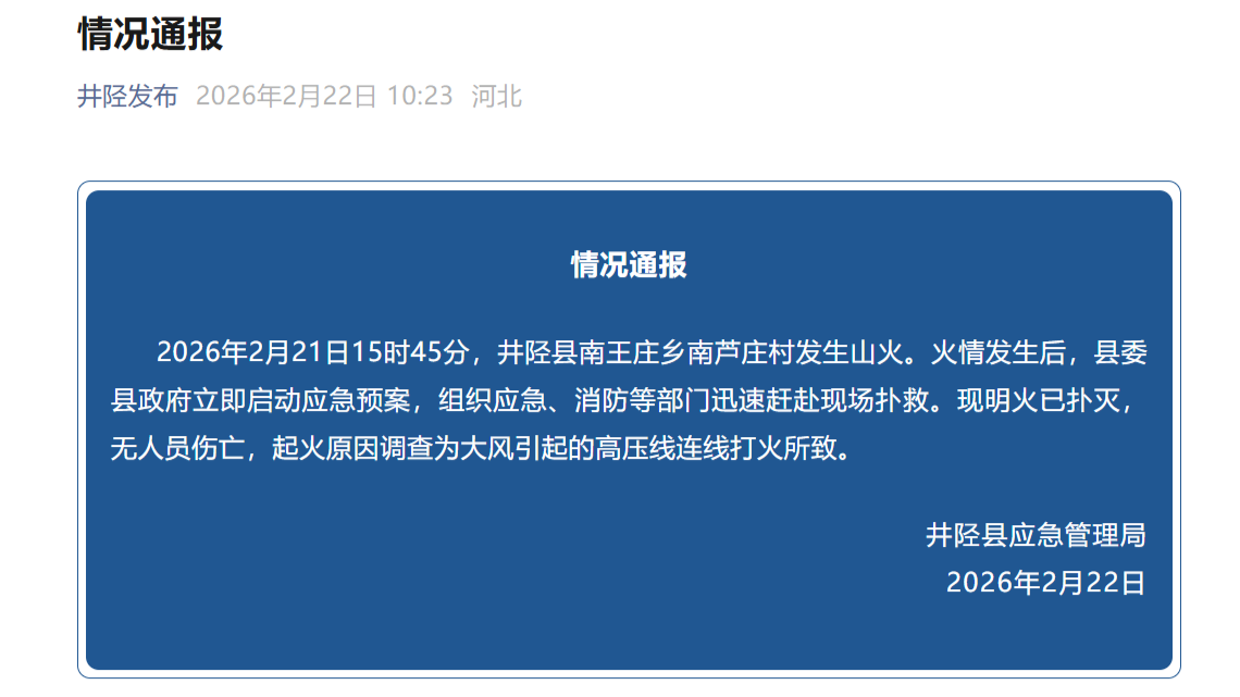 河北井陉县南王庄乡南芦庄村发生山火,目前明火已扑灭,无人员伤亡