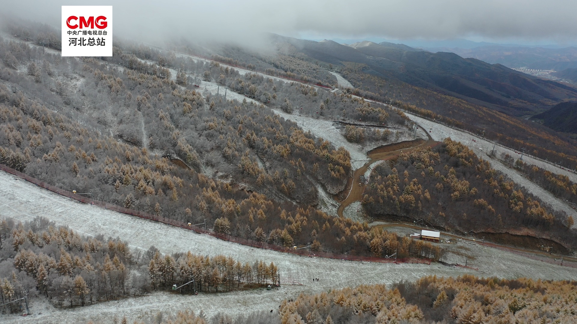 10月16日傍晚张家口崇礼区,降下了小雪,今天上午崇礼区漫山遍野的树上挂上了一层薄薄的积雪,让还未褪去秋装的树木,又披上了冬的颜色。