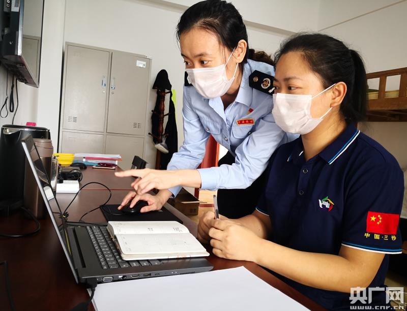 三沙市税务局干部辅导当地企业财务人员办理线上涉税业务 通讯员 供图