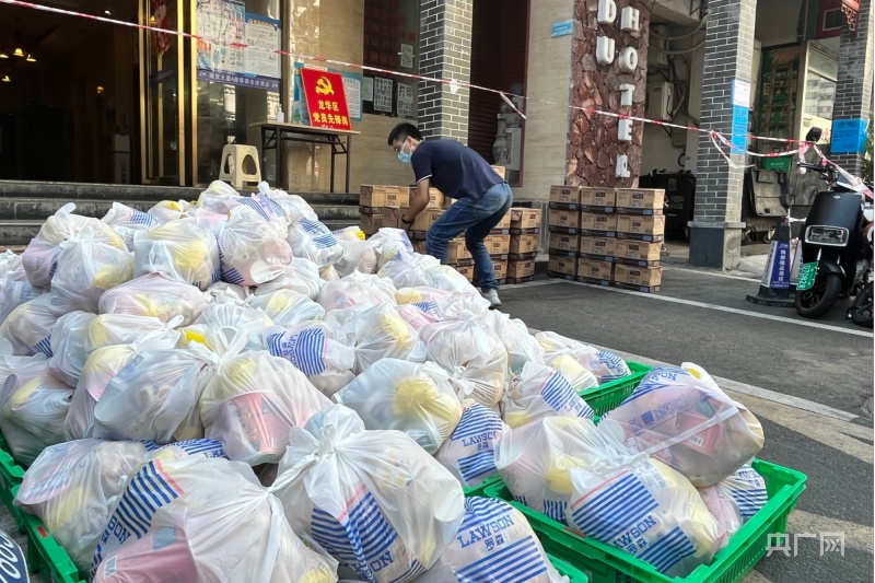 王利宁说,此次新冠疫情发生以来,龙华区商务局时刻牵挂着辖区内封控区、管控区的群众。为做好封控区群众的基本生活保障,龙华区商务局连夜组建物资保障专班,联系爱心企业调集物资,于今日运送到酒店。“酒店内不能够自己做饭,考虑到里面人员的生活需求,我们联系到了这家爱心企业,调集了一些食品,保障酒店内群众的基本生活。”