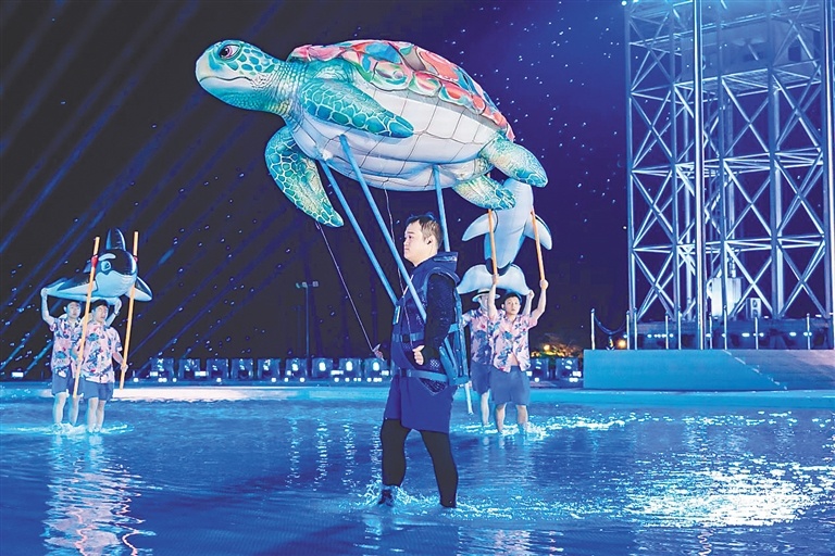 儒艮、鲸鲨、海龟等“游”到观众身边。