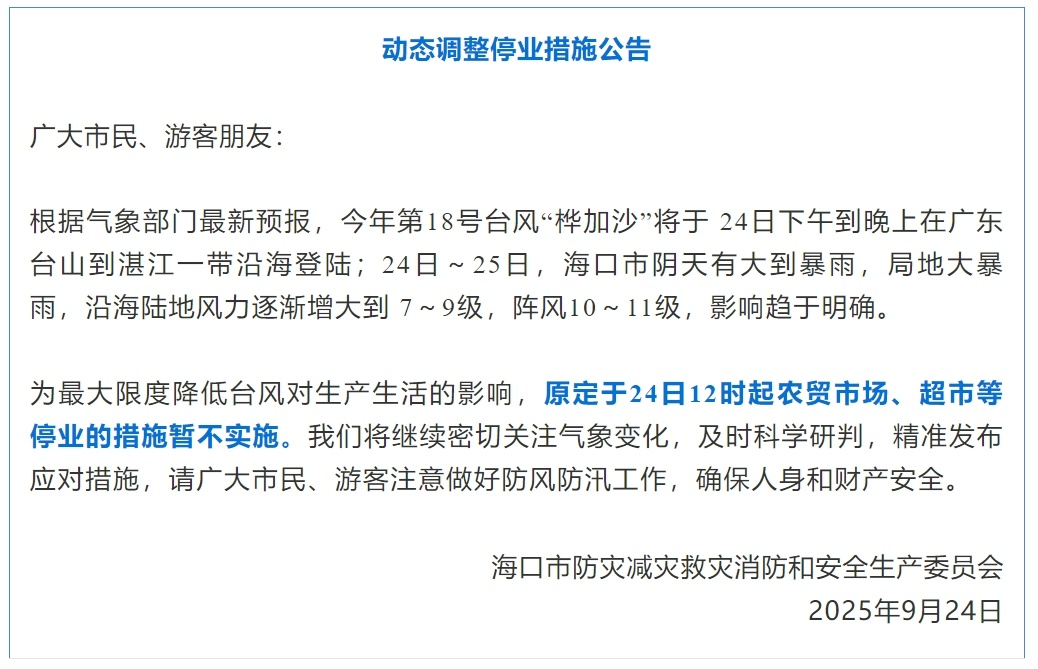 农贸市场、超市等暂不停业!海口发布动态调整停业措施公告